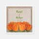 Bunches of orange tulips at the base of a kraft paper pattern on white napkins. Personalise with your wording or delete it. Click CUSTOMIZE button to CHANGE the fonts and font colours. COORDINATING items available in our store. Wedding invitations, RSVP Cards, Reception Cards, Thank You Notes and more. See the entire collection at ---> http://bit.ly/2LGtAf0 <---