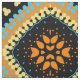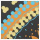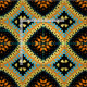 Seamless decorative pattern featuring geometric shapes in orange, yellow, turquoise and black.
