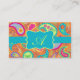 Orange Turquoise Modern Paisley Pattern Monogram Business Card