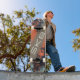 Skateboard design in orange with graphic elements, inscription in the central part and climbing plant.