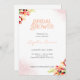 The standout feature of this invitation is the beautiful orange flowers and green leaves, carefully placed to evoke the beauty of nature in full bloom. Each petal and leaf is intricately designed, showcasing the elegance of floral arrangements. To add a touch of artistic finesse, delicate orange watercolor accents are artfully incorporated, creating a sense of fluidity and grace.