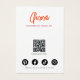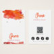 This jewellery display card is distinguished by a modern, hand-painted orange watercolor wash background, employing a minimalist brushstroke technique on a white backdrop for a clean and trendy aesthetic. It includes designated spots for elegantly displaying earrings, seamlessly blending functionality with style. The card offers customization options for your name, website, slogan, and social media icons, alongside a QR code for easy digital access. With its contemporary design and sleek minimalism, this card is perfectly suited for a handmade jewellery company looking for a trendy and simplistic showcase.
