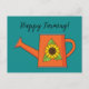 Orange Watering Can with Sunflower | Add Text Holiday Postcard