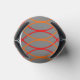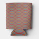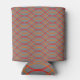 This can cooler has a Boho design of orange and red waves on a field of gray.