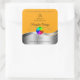 The design features a noble shimmery wavy silver decoration with soft glitter stars and a orange background.