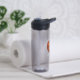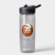 This team colours basketball themed water bottle is suitable for girls or boys and features the realistic image of a basketball that has two recolored panels--one orange and one white--upon which you can personalise the athlete's name and jersey number - their custom school or club name encircles the top of the graphic, and mascot name is below - by katz_d_zynes