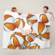 This fun basketball themed fleece blanket can be personalised with the athlete's name atop the image of a cluster of varied size basketballs that have alternating orange and white panels - the basketballs are selectively shaded for a unique 3D appearance - by katz_d_zynes