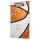 This fun basketball themed clipboard features the realistic image of an abstractly oversized orange & white basketball that has delicate hand-drawn doodle flowers, feathers and paisleys patterned on the basketball's orange panels - customise with the coach's or athlete's name - by katz_d_zynes