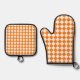 Orange White Chequered Diamond Pattern Oven Mitt & Pot Holder Set
