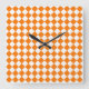 Orange White Chequered Diamond Pattern Square Wall Clock