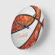 This unique basketball wall clock features the realistic image of a basketball that has alternating orange and white recolored panels with delicate doodle flowers, feathers and paislies patterned on the basketball's orange panels - personalise with the athlete's name for her basketball room - by katz_d_zynes