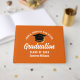 This modern orange and white custom senior graduation party guest book features your high school or college name for the class of 2025. Customise with your graduating year under the chic handwritten script and black grad cap for a great personalised graduate keepsake gift.