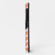 Personalised iPhone 5 case designed with an orange and white houndstooth pattern and custom printed with your name or text in white over a diagonal black stripe.