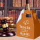 This modern custom law school graduation party favour box features the college graduate name in elegant white script on the orange background for the class of 2024. Customise with your university under the scales of justice with a graduation thank you message for a new lawyer.