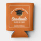 This modern orange and white custom senior graduate can cooler features classy typography of your high school or college name for the class of 2025. Customise with your graduating year under the chic handwritten script and black grad cap for a great personalised graduation keepsake gift.