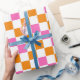 Orange White Pink Chequered Pattern Design Wrapping Paper