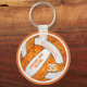 This cute volleyball keychain with custom school team name features the realistic image of a volleyball that has a floral kaleidoscopic pattern blended with its orange panels - her name and team name plus her jersey number are customisable in coordinating orange - by katz_d_zynes | search ALL katzdzynes' orange & white or grey volleyball team colours gifts >>>> https://www.zazzle.com/store/katz_d_zynes/products?cg=196576998074859192