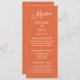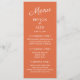 Orange menu with white text for the rehearsal dinner, wedding reception, or any other event you are planning. The background and text colours are fully customisable with Zazzle's design tool, so create your menu to match your own event.