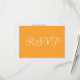 Wedding RSVP with pretty fresh fruit inspired orange solid colour background and white script on front. Personalise back in black text on white background with your special occasion text on these modern invitations lovely for a summer wedding. Orange Hex code FFA62F. Click to Personalise and edit font style or colours. Original Designs by TamiraZDesigns.