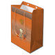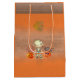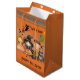 Check this cute Halloween bright orange Witch Way GIFT BAG featuring monsters, witch in pumpkin dress, a kitten, an owl, and cat flying a broom.