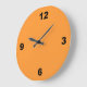 A simple wall clock with a light orange background under large black numbers marking the 12, 6, 9 and 3. For any orange decor kitchen or room. Click Customise It to add your custom text, change background colours and more.