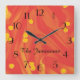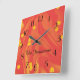 Orange with Small Yellow Hearts, Name, Round or Square Wall Clock