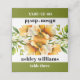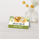 This stunning wedding escort place card features a gorgeous rhododendron branch with orange yellow flowers positioned at the top. To add a touch of elegance, olive green is incorporated at the bottom, creating a sophisticated look that complements the bold typography of the simple text. This combination results in a contemporary and fashionable design that is bound to leave a lasting impression on your guests.