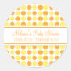 Baby shower thank you favour tag sticker in elegant bright orange, lemon yellow and white casual and fun polka dots pattern. Customisable with your own text, contact us for a colour change. The perfect way to decorate your baby shower favours and thank your guests for being a part of your special day.