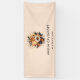 Business banner with an elegant yet goth style flower bouquet. Composed of orange tulips, yellow daisies, grey leaves and sprigs and some orange berry accents.
