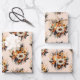 Orange Yellow Grey Flower Bouquet Pattern Wrapping Paper Sheet