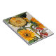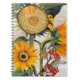 Orange-yellow sunflowers painted at various angles, with one going to seed, an artistic idea for any flower lover gardener. > Gorgeous print of a sunflower watercolor painting by artist, Harriet Brock. > Customisable: Add your own custom name or text.