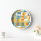 Orange Yellow Teal Blue Seafoam Retro Art Pattern Clock