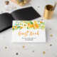 This beautiful and elegant guest book features watercolor oranges, daisies and foliage. The text combines handwritten script and serif fonts for a stylish and modern look. This is perfect for a spring or summer rustic baby shower.