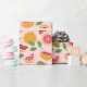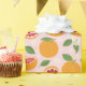 Stylised Blood Oranges Citrus pattern with little flowers on light pink background