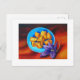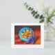 Vividly coloured postcard great for greetings between artsy friends. Postcard design is a colourful still life of orange wedges arranged on a turquoise plate; blank on the back with small Zazzle logo and artist's name at the bottom.