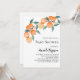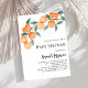 A white. Decorated with watercolored oranges. Personalise and add a name and party details.