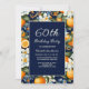 Oranges White Flowers Navy Blue 60th Birthday Invitation