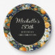 Oranges White Flowers Navy Blue Birthday Welcome Paper Plate