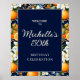 Oranges White Flowers Navy Blue Birthday Welcome Poster