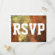 This RSVP card design features a pattern that's like a orange/yellow mist or haze. The address and RSVP form are customisable.