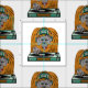 A funny cartoon orangutan, this ape is a D.J., making music on a turntable, record player.