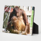 A beautiful photographic design of a mother orangutan and her baby.
