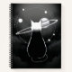 Write your thoughts and dreams in this elegant minimalist notebook featuring a white line-art silhouette of a sitting cat surrounded by orbiting planets and tiny stars. The cosmic design on a sleek black background makes it perfect for space lovers, cat enthusiasts, and anyone who appreciates subtle, mystical art.