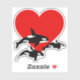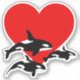 Cool Orca killer whale sticker. Orca whales swimming over a big read love heart. I love Orca killer whales. Orca whale lover gift.