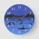 An acrylic painting of a pod of orca under a starry, evening sky adorns this clock!