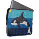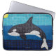 Artistic depiction of an orca whale in the ocean, illuminated by a vibrant sun in the background.