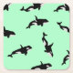 Orca Whale Illustration Pod Pattern Ocean Mint Square Paper Coaster