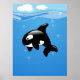 Adorable cartoon chubby Orca whale with a tiny white heart near its tail.