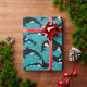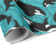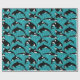 Add an aquatic touch to gifts with this illustrated wrapping paper that features illustrations of orcas or killer whales in black and white set against a teal blue ocean waves background.