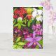 Original fine art design of tropical orchid flowers by botanical artist, Carolyn McFann printed on a quality greeting card for floral art fans.